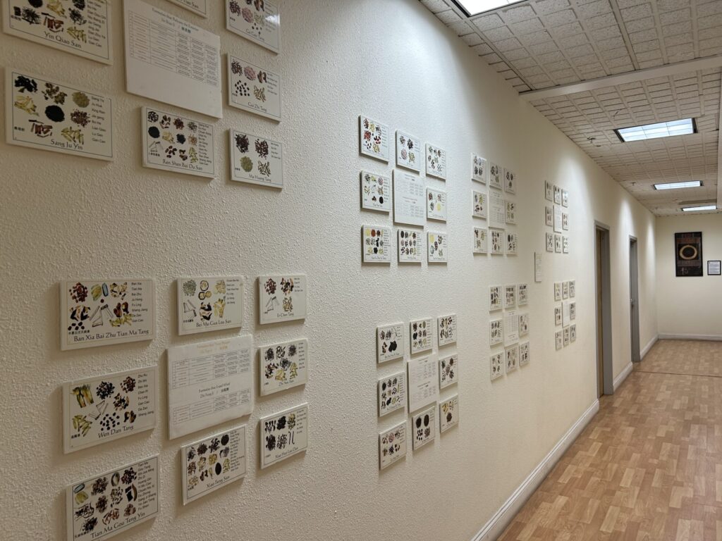 If you want to see how her incredible organization and efficiency can inspire your own studies and practice, visit our second-floor hallway. There you’ll find the “Herb Wall,” which lists all 64 formulas essential for passing the CALE (California Acupuncture Licensing Exam) and the NAACOM exam (soon to be NCBAHM).