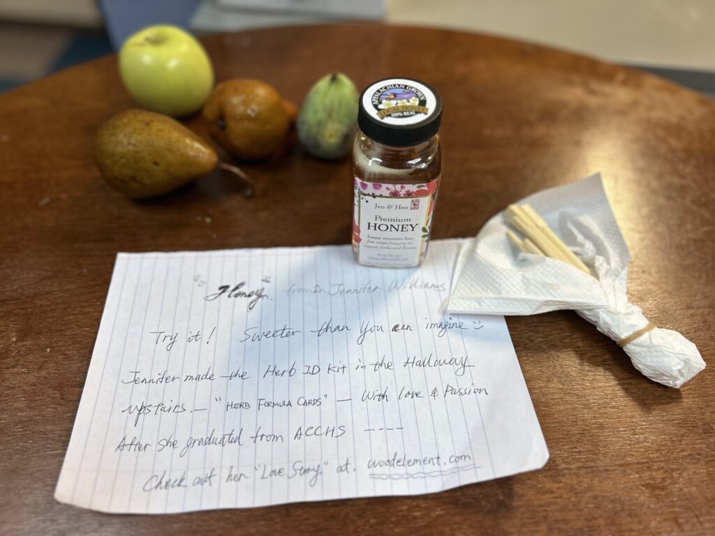 A package came for President Andres Bella — two spicy bottles of honey, carefully wrapped in four layers of plastic and nestled in big bubble wrap inside a large box. The sender? Dr. Jennifer Williams, our beloved alumna and current DAOM Program instructor.
